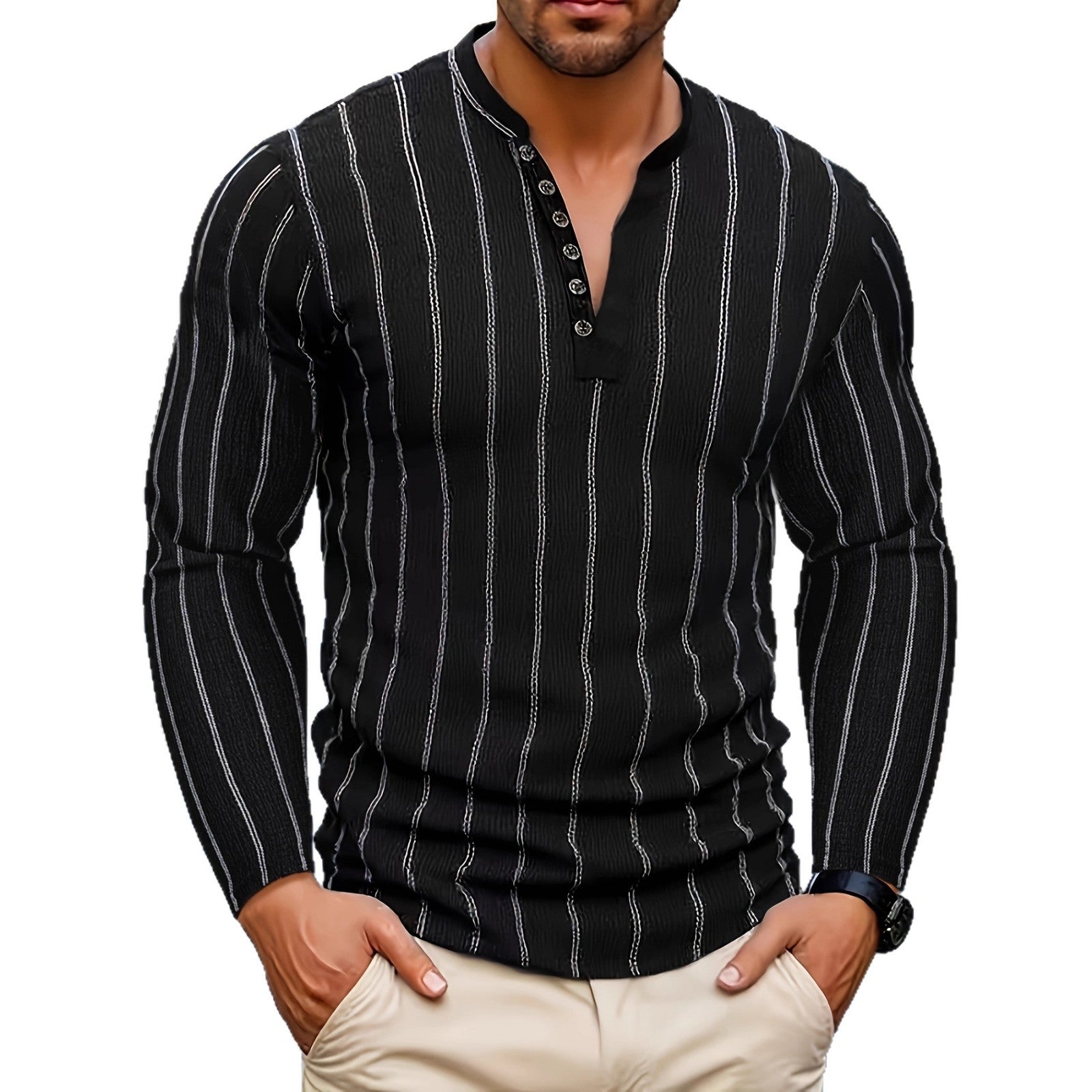 Haut décontracté automne-hiver à rayures, col rond et manches longues.