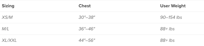 - L/XL: 96 - 116 cm